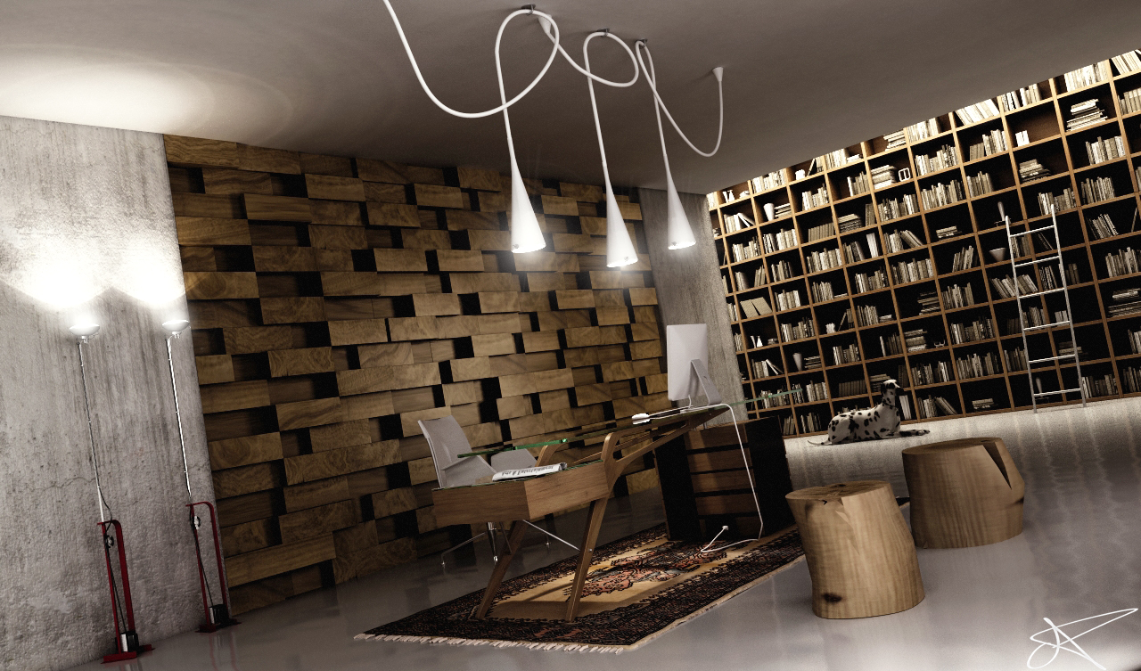 návrh domácí pracovny s knihovnou (soukromý dům Praha)